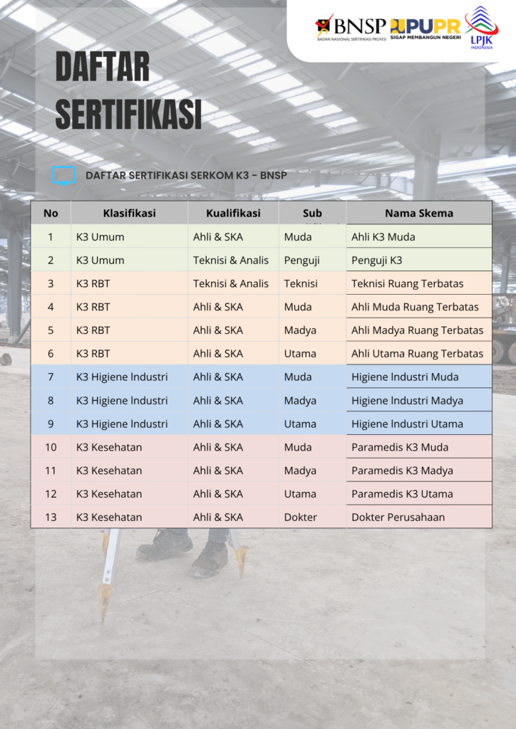 Daftar Skema Sertifikasi Serkom K3 – BNSP